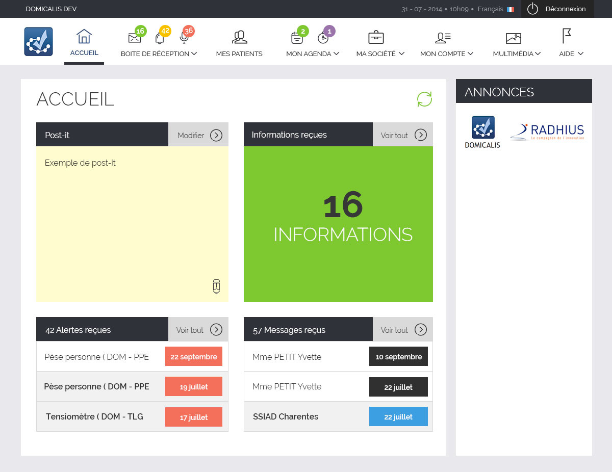 Domicalis est une application SaaS destiné à faciliter la mise en place et le suivi des hospitalisations à domicile.
