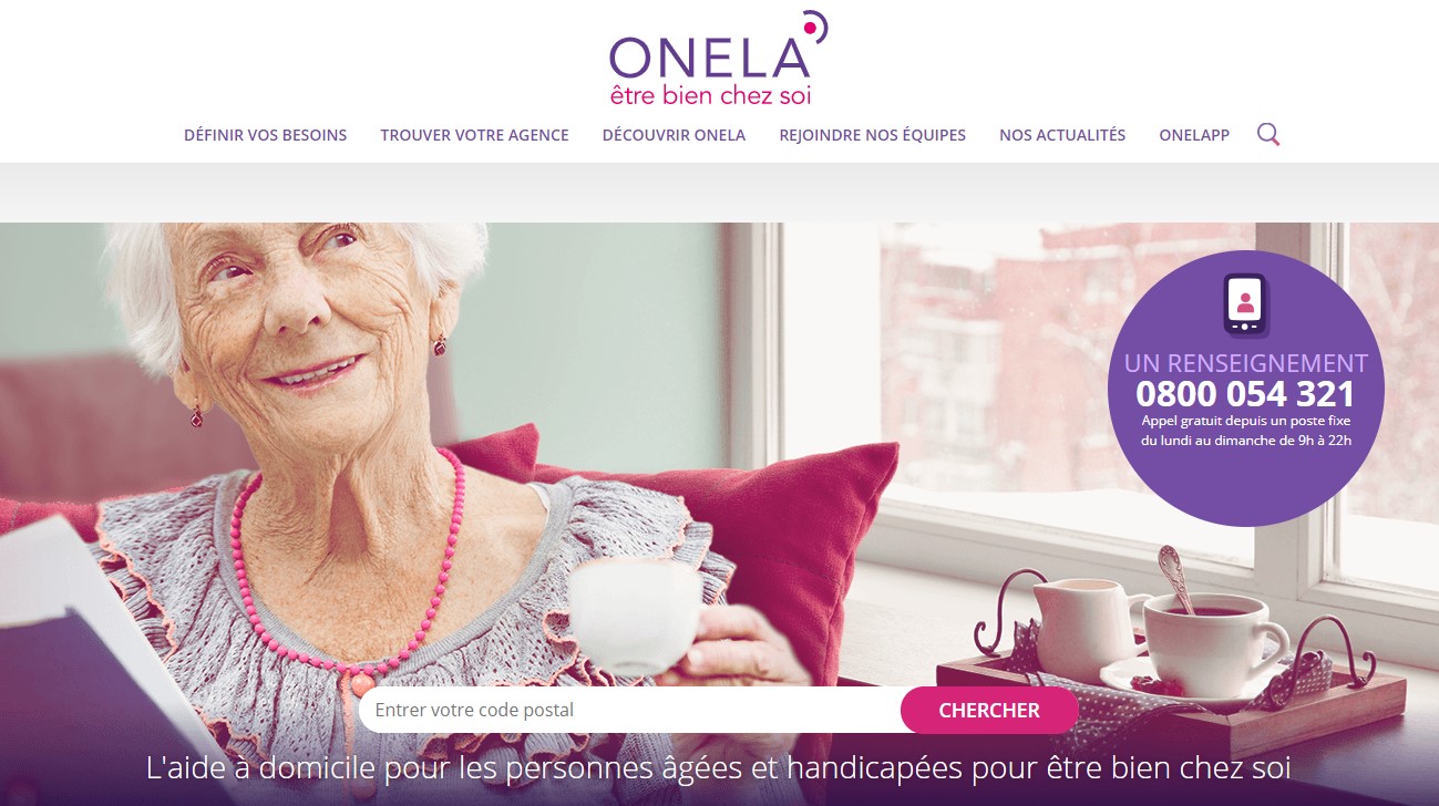 Onela est une société mettant en relation des personnes âgées et handicapées avec des professionnels (Personnel soignant, toiletteurs pour animaux, coiffeurs à domicile, etc...). Cela permet à un public dépendant d'avoir un unique interlocuteur pour ses besoins divers.